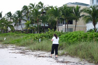 5. Tag: Von Naples zu Bekannten nach Cape Coral Es regnet noch immer, wie es am Vortag gegen Abend angefangen hat. Das Frühstück wird an einer art Poolbar im Freien bereitgestellt, die meisten Motelgäste nehmen sich ein Tablett mit aufs Zimmer. Wir hatten Glück, gerade als wir mit unserem Frühstück in Richtung Zimmer unterwegs sind wird ein - nicht nur mit einem viel zu kleinen Schirm - überdachter Tisch frei. Der Regen ist leicht, ohne Wind und warm, in der Umgebung Palmen, Bambus und Bananenstauden - ein herrlicher Tropentag. Wenn man im trockenen sitzt ist es ganz interessant. Eine Deutsche wartet stehend mit einem Nutellaglas in der Hand unter einem Sonnenschirm auf die Familie. Typisch deutsche Manier: Erst einmal einen Platz reservieren, auch wenn er in diesem Fall nicht der Allerbeste ist. Man merkt ihr das Unwohlsein auch deutlich an, man könnte ja auch etwas nass werden. Aber sie hat Glück und ein Nachbartisch, der wie unserer großzügiger Überdacht und Wasserdicht ist, wird frei. Nach dem Frühstück setzen wir uns noch in den Yakuzee, was einige fragende Blicke der "Frühstücker" nach sich zieht, aber der Regen stört uns nicht - im Wasser wird man eh nass. Bevor wir nach Cape Coral aufbrechen verfallen wir noch im TJ Max dem Kaufrausch. Schon wieder wird ein Trolley gekauft, dieses mal ein kleiner fürs Handgepäck und von Tommy Hillfiger. Der Trolley hat einmal $300 in der uvp gekostet und wird hier für $50 verkauft. Wer da nicht zulangt ist selbst schuld, auch wenn der Dollar wieder stärker ist. D