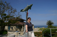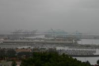 Der Walmart ist relativ klein und hat nicht besonders viel Auswahl, dennoch haben wir das Meiste unserer Einkaufliste bekommen. Jetzt geht es weiter nach zum Los Angeles Harbour und um den Zipfel im Süden vorbei. Der Verkehr hat zwar deutlich zugenommen, es läuft aber noch immer sehr gut und nach nur 15 Minuten sind wir am Los Angeles Harbour, ein gigantisches Hafensystem mit Ladekränen für die Containerschiffe so weit das Auge reicht. In San Pedro führt die Straße über eine Anhöhe, von hier aus erhalten wir einen tollen Überblick: Das riesige Hafensystem auf der einen Seiten und die Berge von Palos Verdes auf der anderen Seite. Die Fahrt entlang der Küstenstraße im Süden der Berge verdeutlicht uns einmal mehr, dass wir vielleicht ausreichend Geld verdienen, Reich ist aber etwas ganz anderes. Hier stehen Villen mit Meer blick, die in Deutschland als großes Mehrfamilienhaus gebaut würden, meist verspielt mit vielen Erkern und unterschiedlichen Dachschrägen, hohen Räumen und gepflegtem Garten. Wer hier wohl wohnt ? Wir biegen ab in den Ladera Linda Park. Der Park besteht aus einer Straße hinein und einem Areal, das aus einer Abbruchkante des hier vorherrschenden Sandsteins, lechten Hügeln und vielfältiger Vegetation besteht. Ein Trail führt uns durch die Hügel der Landschaft, mitten hindurch durch die vielfältige Pflanzenwelt. Lavendel und andere Büsche verbreiten gemeinsam mit dem sonnenbestrahlten, sandigen Boden einen Duft, der mich an Sardinien erinnert - einfach schön. Oben vom Hügel aus werden wir noch mit einem Blick über die Pazifikküste belohnt, die hier den Wellen des Ozeans trotzt.