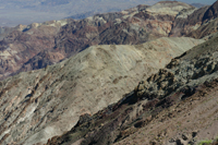 Die Nacht war warm, aber bis 5:30 Uhr habe ich gut und bequem geschlafen. Nachdem mich ein morgendliches Bedürfnis aus dem Zelt getrieben hat starte ich auch gleich mit den weiteren, allmorgendliches ToDos: Wasser kochen und ab in die Thermoskanne, eine Kanne Espresso machen, mit Instand-Kaba mischen und den Morgen genießen. Endlich finde ich auch mal die Zeit, ein paar Takte meines Tagesbuchs zu schreiben, die Tage vorher waren hierfür viel zu stressig. Generell sind wir bisher immer komplett unterwegs gewesen, da blieb bisher keine Zeit für den Reisebericht. Heute wollen wir es langsam angehen lassen und wir machen uns erst um ca. 9:30 Uhr auf in Richtung Dantes View. Phantastisch die Aussicht von hier oben, praktisch das gesamte Death Valley kann man von hier oben überblicken. Auf ca, 2500 m Höhe ist die Lufttemperatur deutlich niedriger und der Wind ist kalt. Kauf vorstellbar, dass wir noch vor rund 30 Minuten in der Hitze gesessen sind und der Wind uns wie ein Fön gewärmt hat. In der Bergkette gegenüber ist auch noch ein Gipfel etwas schneebedeckt, auf einem Schild lesen wir etwas von über 11.000 Fuß, also so rund 3500 m.