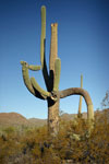 Der Saguaro wird bis zu 15 m hoch und wächste teilweise in unzähligen Verästelungen zu beinahe monströsen Gebilden. Obgleich die Saguaros noch im gesamten südlichen Arizona vorkommen hat die Popularität durch den Städtewachstum und die Zersiedelung auch in entlegenen Gebieten stark abgenommen. Im Saguaro National Park stehen diese Kaktusriesen unter Naturschutz durch die Verwaltung des National Park Service.