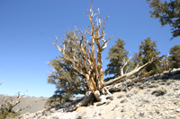 Biegt man vom US Hwy 395 in Big Pine nach Osten auf den Hwy 168 ab und folgt der Beschilderung gelangt man nach rund 31 mi zum Ancient Bristlecone Pine Forest, einem Wald mit den ältesten, noch lebenden Bäumen der Welt. Die ältesten Bäume werden auf ein Alter von rund 4.700 Jahre geschätzt. Das Schulman Grove Visitor Center informiert über die Bristlecone Pine sowie die Gegebenheiten im Forest. Von hier aus führen einige Trails unterschiedlicher Länge durch den alten Wald.