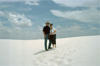 Am Rande der Rocky Mountains macht sich in der Ebene eine Dünenladschaft aus weißem Sand breit. Das Gebiet ringsum ist ein Raketenversuchsgelände, aus dem ein Teil als National Monument zum Schutz der Dünen abgerenzt ist.