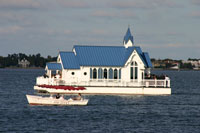 Vom Edison Muesum geht es weiter nach St. Petersburg in die Innenstadt zum Yachthaven und Pier (2nd Ave NE). Am Ende des Piers steht eine umgedrehte Pyramide, von deren Dach eine schöne Aussicht über St. Petersburgh zu haben ist. Natürlich ist die Pyramide vollgestopft mit Gift Shops und Fast Food, aber dafür kostenlos erklimmbar - sowas würde doch bei uns zuhause bestimmt Eintritt kosten. Von hier aus kann man auf einer schwimmenden Kriche heiraten und eine Hochzeitsgruppe kommt gerade an uns vorbeigeschwommen. Irre, auf welche Ideen man kommen kann.