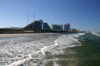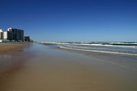Weiter gehts nach Daytona Beach - natürlich zum Wet T-Shirt Contest. Daytona Beach gliedert sich in 2 Bereiche, der Teil auf dem Festland und der vorgelagerte Bereich Daytona Beach Shores. Der Küstenstraße auf den Sohres entlange folgen wir bis zum Zentrum. Die Straße ist dicht bebaut mit Wohnbunkern und Motels, Hotels und Clubs, die wohl in der Hochsaison Tausende von Menschen unterbringen können. Ab und zu gibt es eine Zufahrt