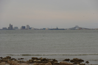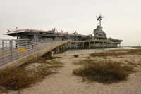 Wir fahren weiter nach Corpus Christi und sind uns einig, der Umweg hat sich nicht wirklich gelohnt. Aber Versuch mach kluch, wie es so schön heißt. In Corpus Christi beziehen wir unser Motel, ein La Quinta im Süden der Stadt. Wir hatten in Midland gute Erfahrungen mit dem La Quinta gemacht, aber diese können sich hier nicht bestätigen. Ein Zimmer haben wir bereits getauscht, weil es muffig und rauchig gestunken hat, das nächste ist auf den ersten Blick i.O., bei näherem hinsehen aber schlecht gereinigt. Testurteil: Nicht empfehlenswert. Generell hat sich die Stimmung bei uns etwas eingetrübt, was aber auch mit dem Wetter zusammenhängen kann. Mittlerweile ist der Himmel komplett zugezogen, ein Wind bläst die kühle Luft an uns heran, so dass ich wieder mal über meine winddichte Fliesjacke froh bin. Die USS Lexington ist ein relativ kleiner Flugzeugträger aus dem zweiten Weltkrieg, der hier angelandet ist und besichtigt werden kann. Ein Stück weiter ist der Corpus Christi Beach, ein langer mittelfeiner Sandstrand zur Corpus Christi Bay. Von hier aus kann man im am Horizont die Ölbohrinseln von Portland beobachten.