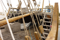 Im Hafen liegt eine Replika der Nina, eines der 3 Schiffe, mit der Columbus 1492 Amerika entdeckte. Die Santa Maria liegt im Bereich des Science Museums, das wir aber nicht mehr besuchen wollen. Wenn man das Schiff so sieht fällt es einem schwer, sich eine monatelange Überfahrt über den Atlantik mit diesem Schiff vorzustellen. Nicht besonders groß, keine prachtvolle Aufbauten wie in den Filmen immer zu sehen, unter Deck führt nur eine Luke - keine Bullaugen, die Licht nach unten bringen. Welch beeindruckende Willensstärke hat diese Menschen zur damaligen Zeit zu solchen Kraftakten getrieben.