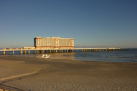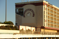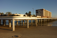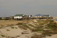 Ausgefrohren geht es die Küste entlang weiter in Richtung Galveston. Nach passieren der Brücke nach Galveston Island ändern sich die Häuser schlagartig: Hier stehen nur noch schöne, neue und große Häuser, genau wie die Villen auf Florida, nur auf Stelzen. Imposant, wie man sich am Hausbau verwirklichen kann - viele Erker, Gauben, feudale Treppenaufgänge - hier haben die Reichen sich ihre Wochenend- und Sommerresidenz gebaut. Galveston ist mit der Nähe zu Houston auch in direktem Einzugsgebiet und ideal für eine Strandresidenz. Unser Zimmer im La Quinta ist günstig und sauber, das Hotel noch relativ neu und somit auch generell ordentlich. Wir fahren weiter nach Galveston entlang der Strandpromenade und entdecken ein großes Hotel, das auf Stelzen in den Strand in Richtung Meer gebaut ist - das "Flagship". Als wir näher kommen entdecken wir, dass die Zufahrt eingerissen und ein Teil der Hauswand zerstört ist und man in einen Teil der Zimmer dank fehlender Wand hineinsehen kann. Hier hat schon länger niemand mehr gewohnt. Später erfahren wir, dass das Hotel vor zwei Jahren dem Hurricane Ike zum Opfer gefallen ist. Der Hurricane Ike muss einer der großen, zerstörerischen Hurricanes gewesen sein, die Texas heimgesucht haben. Infos über Ike habe ich bei Wikipedia gefunden.