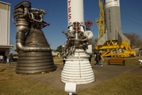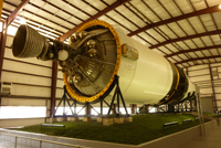 Die letzte Haltestelle ist die Apollo Rakete, die hier aufgebaut ist und in den Einzelteilen (also den 3 Stufen und der Kapsel) erklärt wird. Der Führer hier scheint keinen Kaugummi, sondern eine Monsterkartoffel im Mund zu haben, hier gebe auch ich auf und schaue mir lieber die Schautafeln an. Hier wird verstärkt auf die zukünftigen Missionen eingegangen als auf die vergangenen. Die NASA plant ja eine weitere Mondlandung, hierfür werden neue Raketen entwickelt, eine große für den Transport der Ausrüstung und eine kleinere für die Mannschaft. Geplant ist auch, eine Mondstation einzurichten, die nicht nur ein paar Tage dort verbringen soll, sondern Wochen und Monate. Die Analyse des Mondgesteins hat ergeben, dass auf dem Mond wertvolle Erze und Metalle zu finden sind und es wird über einen kommerziellen Abbau nachgedacht. Hauptzweck soll aber die Vorbereitung für die nächste Stufe der Raumfahrt sein: Ein Flug zum Mars, um diesen genauer zu erkunden.