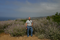 Der Walmart ist relativ klein und hat nicht besonders viel Auswahl, dennoch haben wir das Meiste unserer Einkaufliste bekommen. Jetzt geht es weiter nach zum Los Angeles Harbour und um den Zipfel im Süden vorbei. Der Verkehr hat zwar deutlich zugenommen, es läuft aber noch immer sehr gut und nach nur 15 Minuten sind wir am Los Angeles Harbour, ein gigantisches Hafensystem mit Ladekränen für die Containerschiffe so weit das Auge reicht. In San Pedro führt die Straße über eine Anhöhe, von hier aus erhalten wir einen tollen Überblick: Das riesige Hafensystem auf der einen Seiten und die Berge von Palos Verdes auf der anderen Seite. Die Fahrt entlang der Küstenstraße im Süden der Berge verdeutlicht uns einmal mehr, dass wir vielleicht ausreichend Geld verdienen, Reich ist aber etwas ganz anderes. Hier stehen Villen mit Meer blick, die in Deutschland als großes Mehrfamilienhaus gebaut würden, meist verspielt mit vielen Erkern und unterschiedlichen Dachschrägen, hohen Räumen und gepflegtem Garten. Wer hier wohl wohnt ? Wir biegen ab in den Ladera Linda Park. Der Park besteht aus einer Straße hinein und einem Areal, das aus einer Abbruchkante des hier vorherrschenden Sandsteins, lechten Hügeln und vielfältiger Vegetation besteht. Ein Trail führt uns durch die Hügel der Landschaft, mitten hindurch durch die vielfältige Pflanzenwelt. Lavendel und andere Büsche verbreiten gemeinsam mit dem sonnenbestrahlten, sandigen Boden einen Duft, der mich an Sardinien erinnert - einfach schön. Oben vom Hügel aus werden wir noch mit einem Blick über die Pazifikküste belohnt, die hier den Wellen des Ozeans trotzt.