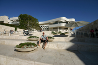 Wir fahren durch die Hügel von Beverly Hills in Richtung Getty Center. Hier sind die Gebäude nochmals einen Tick (oder eine Welt ?) größer als in den Hollywood Hills. Ob hier die ganzen Schauspieler wohnen ? Die Parkgebühren im Getty Center sind ab 17:00 Uhr kostenfrei, vorher muss man noch $15 berappen. Wir sind 2 Minuten vor 17:00 Uhr da und müssen deshalb nochmals eine Runde hinaus und wieder zurück drehen, um die $15 zu sparen.