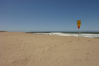 Am Ortseingang von Ventura kaufen wir noch ein paar Avocados für $2 für 5 Stück und machen uns auf den Weg in Richtung Santa Barbara. Und kurz vor Santa Barbara müssen wir nochmals anhalten: Hier gibts 10 Avocados für $1 !!! Wie erwartet sind die Avocados deutlich kleiner und leider noch nicht ganz reif, doch der Händler gibt uns zu den 10 Avos noch eine Tüte mit reifen dazu. Auch einen Erdbeerkorb packen wir ein, so frische und gute Erdbeeren finden wir sonst garantiert nie wieder. In Santa Barbara machen halten wir am ersten Strand an und machen uns über die Dreingabe der Avocados her - lecker ! Am Strand sehen wir zwei Grüppchen mit Neoprenanzug, wahrscheinlich eine Surfschule. Aber ist niemand im Wasser. Ist so eine Trockenüberung im Neoprenanzug ?