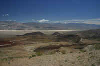 In Lone Pine tanken wir das Auto nochmals richtig voll, die Preise im Death Valley werden bestimmt rund 30% höher liegen. Die Strecke geht zwar einen Großteil gerade aus, ist aber trotzdem abwechslungsreich. Der ausgetrocknete und versalzene Owens Lake zur rechten, die Bergkette zur linken und dann durchqueren wir die Berge. Von 5000 feet geht es hinunter auf unter 1000 feet, dann wieder hoch auf über 5000 feet und zuletzt bis unter den Meeresspiegel.
