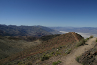 Die Nacht war warm, aber bis 5:30 Uhr habe ich gut und bequem geschlafen. Nachdem mich ein morgendliches Bedürfnis aus dem Zelt getrieben hat starte ich auch gleich mit den weiteren, allmorgendliches ToDos: Wasser kochen und ab in die Thermoskanne, eine Kanne Espresso machen, mit Instand-Kaba mischen und den Morgen genießen. Endlich finde ich auch mal die Zeit, ein paar Takte meines Tagesbuchs zu schreiben, die Tage vorher waren hierfür viel zu stressig. Generell sind wir bisher immer komplett unterwegs gewesen, da blieb bisher keine Zeit für den Reisebericht. Heute wollen wir es langsam angehen lassen und wir machen uns erst um ca. 9:30 Uhr auf in Richtung Dantes View. Phantastisch die Aussicht von hier oben, praktisch das gesamte Death Valley kann man von hier oben überblicken. Auf ca, 2500 m Höhe ist die Lufttemperatur deutlich niedriger und der Wind ist kalt. Kauf vorstellbar, dass wir noch vor rund 30 Minuten in der Hitze gesessen sind und der Wind uns wie ein Fön gewärmt hat. In der Bergkette gegenüber ist auch noch ein Gipfel etwas schneebedeckt, auf einem Schild lesen wir etwas von über 11.000 Fuß, also so rund 3500 m.