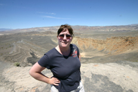 Auf der Rückfahrt zweigen wir noch zum Ubehebe Crater ab, einem gigantischen Vulkankrater, der bei einer Explosion vor rund 2000 Jahren entstanden ist. Wenn man vor dem gigantischen Loch des Kraters mit seinem Durchmesser von rund 800 m und der einer Tiefe von 150 m steht kann man sich gar nicht vorstellen, welch Explosionskraft hinter einer solchen Wucht stecken muss. Der kleine Nebenkrater, zu dem man noch rund 500m den Berg hinauf muss wirkt dagegen wie die Kindergartenversion.