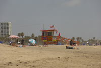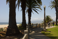 Frühstück fällt heute aus, dafür entledigen wir uns schon einmal der Sachen, die wir wegwerfen werden: Das restliche Benzin, das Restgas sowie unsere tapferen Campingstühle, die uns mittlerweile bei so einigen Urlauben begleitet haben und mittlerweile aus allen Nähten gehen. Das gibt auch wieder Potenzial beim Gepäck, so dass wir hoffentlich ohne Übergepäck unsere Einkäufe nach Deutschland bringen können. Da ist doch, trotz dem relativ schlechten Dollarkurs, einiges zusammen gekommen. Wir fahren, nach einem kurzen Stopp beim Starbucks, durch den Malibu Canyon an die Küste zurück. Entgegen den anderen beiden Streckenführungen durch den Topagna Canyon oder die Strecke über Malibu Mar Vista erklimmen wir keine Höhen, sondern der Canyon ist tief eingeschnitten durch die gesamte Bergkette bis an die Küste. Zwar ohne Aussicht, aber dafür auch schön zu durchfahren. Ohne Straße wäre das auch eine schöne Wanderung. In Santa Monica gönnen wir uns nochmals einen Strandspaziergang. Leider ist das Parkhaus am Visitor Center, in dem wir sonst auch immer geparkt hatten, mittlerweile gebührenpflichtig. War mir bisher immer unsverständlich, trotzdem schade. Dank mangelnder gebührenfreier Parkplätze stellen wir unser Auto dann an der Ocean Ave ab und ich füttere die Parkuhr mit 3 Quater, bis ich bemerke, dass die verbleibende Parkzeit bei 15 Minuten nach dem ersten Quater stehen bleibt. Und dann fällt uns auf, dass hier die Höchstparkdauer auf 15 Minuten beschränkt ist, die Uhr aber munter weiter alle Geldstücke gierig aufsaugt, ohne dann zu reagieren - toll ! Für weitere $2 finden wir dann auf der gegenüberliegenden Seite einen Parkplatz mit einer erlauben Parkdauer von 2 Stunden und machen uns auf an den Strand.