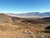 Die weitere Fahrt ins Death Valley verlief problemlos und ist landschaftlich bereits ein echter Hinkucker. Ewige Weiten mit blondem Gras wechseln sich mit Hügeln und schroffen Felsen ab, dazwischen ein rund 1000m tiefes Tal und immer wieder Joshua Trees auf den Weiten. Das Wetter war sonnig, aber dazu ging ein mächtiger kalter Wind, der einen fast von den Aussichtsstellen weggeblasen hätte. Hoffentlich ist es nicht so windig, wenn wir unsere Harleys mieten ...