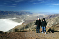 Nach einem Abstecher durch den Artist Drive, bei dem dei gesamte Farbenpracht der Erdfarben auf kleinem Fleck vereint ist, und dem Weg zur Natural Bridge den Wash hinauf machen wir uns auf zum Glacier Point, knapp 1700m über Null und praktisch direkt über Badwater. Von hier oben haben wir eine gigantische Aussicht über den gesamten Park. Leider kann sich der Wind auch ungestört entfalten und bläst uns mit eisigen Böen das letzte bichen Wärme aus dem Leib. Diese Null Grad Celsius fühlen sich definitiv kälter an.