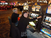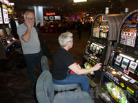 Zurück im rettend warmen Auto fahren wir wieder hinunter - und die Tanknadel ist mittlerweile unter Null angekommen. Eigentlich kann das gar nicht sein, da die Anzeige noch ca. 1/8 oben auf dem Aussichtspunkt angezeigt hatte. Deshalb beschließe ich, dass es die Verteilung bei der steilen Bergabfahrt sein muss - und biege unten dann nicht zurück zum Visistor Center ab, wo sich eine Tankstelle befindet, sondern nach Osten aus dem Park hinaus in Richtung Las Vegas. Da die extrem spritsparende Fahrweise natürlich bei meinen Mitfahrern nicht unentdekt bleibt muss ich die Hosen runterlassen: Auch bei der Bergauffahrt hat sich die Tanknadel nicht wirklich nach oben bewegt und hängt wie festgeklebt auf Null fest. Aber bis zur nächsten Siedlung ist es nur noch 5 Meilen und es geht bergab, sollte also kein Problem sein - hätte es eine Tankstelle gegeben. Aber man kann nicht nur Glück im Leben haben, ausser ein paar heruntergekommene Hütten findet sich hier gar nichts. Die weitere Fahrt bis zur nächsten Stadt, ca. 15 Meilen, verläuft in eisiger Stille. Meine AUfheiterungsversuche werden mit "wie kann man nur" und "hättest Du da nicht so Gas gegeben" gegen mich quitiert, und so schweige ich dann auch lieber. Besser wirds erst, als wir den Ort erreichen und neben der Zapfseule anhalten. Die Weiterfahrt nach Las Vegas verlief ohne zwischenfälle, wir hatten noch einen Abstecher durch den Red Rock Caonyon unternommen (ist bei einer der nächsten Reisen mal einen Tag zum genaueren Erkunden wert) und sind durch der alte Zentrum am Golden Nugget vorbei gefahren. Und wieder macht sich Stille breit im Auto, nur manchmal unterbrochen durch "die spinnen" und "das gibts doch nicht" oder "der Hammer".