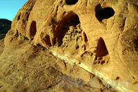 Weiter gehts durch den Valley of Fire SP mit leuchtenden Steinen, die Sonne geht schon wieder langsam unter. Wir schieben den kurzen Rundgang hinten im Tal ein, wo auch der Star Treck "Treffen der Generationen" gedreht wurde. Schon die Fahrt hinter ist ein Erlebnis, in engen Kurven und vielen Berg und Talfahrten führt der Weg in das Valley hinter. Vorbei an roten Felsen, die in der tiefstehenden Sonne zu glühen scheinen, durchmischt von gelben und anderem hellen Gestein.