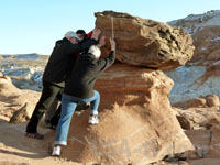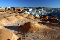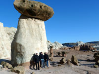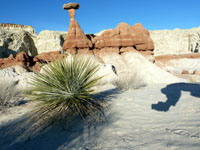 Wir fahren weiter zu den White Rocks, doch leider ist ca. 4 Meilen vor den Rocks Schluss und die Weiterfahrt verboten. Wahrscheinlich ein Tribut an den steigenden Bekanntheitsgrad und der doch eher fragilen Natur, wir sind das letzte mal noch hinter gefahren. Im Auto hat niemand mehr Lust zu laufen, und so fahren wir weiter in Richtung Toadstool Hoodoos.