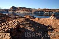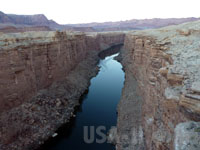 9. Tag: Rund um Page 1 - Antelope Canyon, Horseshoe Bend und Marble Canyon Der Tag beginnt wie immer mit einer Dusche, oder auch nicht. Wasser rauscht zwar durch den unteren Hahn, lässt sich auch wunderbar in Temperatur und Menge regulieren, nur der blöde Stöpsel, den man ziehen muss, um das Wasser in die Brause umzuleiten, bewegt sich keinen Millimeter. Also fällt die Dusche spontan aus. Wir fahren die Overlooks rund um den Damm ab und bewundern die Wunderwerke, zum einen der Technik und Baukunst, zum anderen die des Colorados, der in Jahrmillionen senkrechte Felswände, hunderte Meter tief in den Stein gesägt hat.