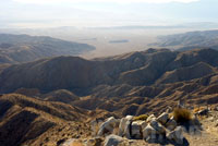 Wir fahren erst mal zurück zum Motel, um das Auto dort abzustellen und erten Fahrübungen ohne "Mitfaherer" hinten auf der Maschine zu unternehmen. Der Sound ist echt super, und gegenüber meiner Changyang mit 26 PS und Kardanantrieb und sonstiger Technik von 1936 gehen die Teile ab wie nur was. Die "Mädeels" hinten auf der Maschine geht es also in Richtung Joshua Tree NP. Nach bereits 30 km durchfahren wir den Box Canyon, eine fahrenswerte Straße zwischen Mecca und dem Park, kurvig durch einen Wüstencanyon und das erste wirklich sehenswerte Stück unserer Tour.