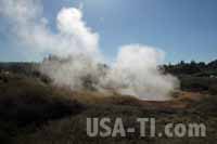 Weiter geht es zu den Craters of the Moon. Erstaunlicher weise kosten diese nur $6 eintritt und nicht, wie mittlerweile ewohnt, $35. Die Craters of the Moon ist ein geothermisches Feld, durch das sich einzelne Krater und kleine Schluchten zieht. Überall steigt Dampf auf und, wie soll es anders sein, die faulen Eier sind auch wieder da. In den Kratern kochen entweder Wasserpfützen oder Schlamm, alternativ zischt der Dampf direkt zu kleinen Öffnungen mit 140°C aus der Erde heraus. Durch das Feld führt ein ca. 45 minütiger Rundweg, meist auf Holzplanken, damit sich nicht wegen der Hitze aus dem Boden die Schuhsolen ablösen - oder wegen der Neuseeländer, die am liebsten Barfuß oder nur in Socken spatzieren gehen. Alles in allem schön, nur den Mond hätte ich mir nicht so mit Farnen und einer Art Heidekraut bewachsen vorgestellt.