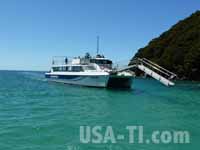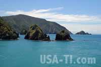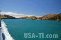 11. Tag: Von Wellington nach Nelson Der Wecker reißt uns um 7:45 Uhr aus dem wohltuenden, erholsamen Schalf. Wir schrecken auf und machen uns gleich daran, alls zu packen, zu duschen und alles im Auto zu verstauen. Wir müssen um 9:00 Uhr das Auto abgeben und uns zur Fähre zur Südinsel machen. Den Mietwagen dürfen wir nicht mitnehmen, was uns Sorge wegen dem ganzen Gepäck bereitet - wie sollen wir den Berg denn aufs Schiff transportieren? Wir erreichen die Mietwagenstation fast pünktlich und geben den Wagen ab. Komischer weise hat er das letzte mal gequietscht, als wir losgefahren sind, und danach ist Stille eingekehrt. Trotzdem teilen wir den Vorfall ordnungsgemäß mit, doch das scheint nicht wirklich zu interessieren - egal, wir sind das Problem los. Das Gepäck nimmt man gar nicht selbst mit auf das Schiff, es wird aufgegeben wie beim Flugzeug, somit wäre auch die Schlepperei gelöst und wir besteigen mit unserem Handgepäck den Dampfer. Die Überfahrt dauert ca. 3 bis 4 Stunden und wir haben ruhige See.