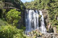 Letzter Stop ist an den Bridal Wasserfällen, hier stürzt das Wasser über 60 Meter in die Tiefe. Und nicht nur die Höhe ist beeindruckend, auch die gesame Umgebung ist der Hammer. Aber hier sagen Bilder mehr als Worte ... 22. Tag: Von Hamilton über Hobbiton nach Auckland Es gab schon Nächte, in denen ich besser geschlafen habe. Aber an dem Besuch im Speits Brauhaus gestern Abend kann es sicher nicht gelegen haben. Neben dem Essen habe ich gerade mal 2 Pint getrunken, obwohl das Ale super frisch und lecker war. Wir packen unsere Sachen final zusammen, so dass wirklich alles in der Tasche bzw. Koffer verstaut ist, da wir heute Abend wieder zurück nach Beijing fliegen. Wir treffen in Hobbiton bzw. Hobbingen ein. Hier wurde die Hobbitstadt für die Trilogie "Herr der Ringe" gedreht. Umgeben von einer Hügellandschaft erreichen wir das Visitor Center. Leider ist die Hügellandschaft für die Gegend ungewohnt gelb, da es seit einiger Zeit nicht mehr geregnet hat. Für uns prinzipiell gut, wollen wir im Urlaub doch nicht in Regenklamotten rumlaufen, für die Natur aber eher nicht so gut, insbesondere komisch, wenn ein Regenwald austrocknet. Das Visitor Center ist recht lieblos gestaltet, eine Wellblechhütte mit jeder Menge Mergendising ist alles, was man von der Hobbitstadt sieht, ohne eine der überteuerten Touren zu besteigen. Für 2 Stunden latzt man hier $75 pro Person, und sieht dann die Aussenkulissen (also die Hügel mit den Runden Türen ???) und einen Nachbau der Hobbitkneipe - für uns zu viel Geld für das bischen Kulisse und wir fahren weiter nach Auckland.