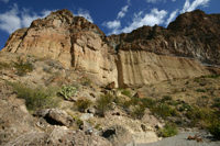 Der Ross Maxwell Scenic Drive führt über rund 30 mi / 48 km von Castolon Santa Elena Junction bis zum Santa Elena Canyon Overlook, einer der schönsten und abwechslungsreichsten Routen im Park. Die Fahrt geht durch die Burro Mesa, benannt nach den einst hier gransenden Eseln und nach rund 2 mi / 3,2 km vorbei an einem Aussichtspunkt, von dem aus der "Casa Grande" durch "The Window" betrachtet werden kann. Weiter geht es zur Sam Nail Ranch, einem alten Farmhaus. Von hier aus lassen sich zahlreiche Vögel und Wildtiere beobachten, die den Schatten und das Wasser, das noch immer von den Windmühlen gepumpt wird, nutzen. Rund eine Meile weiter stehen Steinwälle inmitten der Landschaft. Diese wurden durch flüssiges Lava, das in Erdspalten eindrang und erstarrte, geformt. Die Erosion hat die weichen Sedimentschichten der Ebene abgetragen und die "Mauern" übrig gelassen. Vom Blue Creek Ranch Overlook aus kann man die ehemalige Homer Wilson Ranch sehen, eine der großen Ranches der Gegend. Ein kurzer Trail führt zu den verwaisten Ranchgebäuden, von hier aus können auch weiterführende Wanderungen angeschlossen werden. Der Sotol Vista Overlook bietet auf einer Anhöhe einen phantastischen Rundumblick, der am Horizont bis zum Stanta Elena Canyon reicht. Eine kurze Stichstraße biegt zum Aussichtpunkt ab und sollte auf keinen Fall übergangen werden. Zum Burro Mesa Pouroff zweigt eine kleine Stichstraße ab und ein kurzer Trail (0,5 mi) schließt sich an, der in den meist trockenen Box Canyon hineinführt. Der Trail mündet an einem hohen, trockenen Wasserfall. Vom Mule Ears Viewpoint aus hat man den Besten Blick auf die Mule Ears Peaks, die eben nach dem Vorbild der Maultierohren benannt sind. Vom Viewpoint führt ein rund 2 mi / 3,2 km langer Trail zu einer Quelle inmitten der Wüste. Den Tuff Canyon kann man gut von einer Aussichtsplattform einsehen. Entstanden ist der Tuff Canyon aus Ablagerungen der vukanischen Ascheschichten in Verbindung mit Geröll und Tuffstein und wurde anschließend vom Blue Creek eingeschnitten. Alternativ zur Aussichtsplattform kann man auch auf einem steilen Pfad (0,8 mi) in den Canyon gelangen. Der Castolon Historic District war in der Vergangenheit ein Stützpunkt einer Garnison, die die Rancher der Gegend vor den mexikanischen Banditen im Zeitruam des Grenzstreits zwischen 1914 bis 1918 zwischen den USA und Mexiko schützen sollte. Zu der Zeit trieb auch der Bandit Francisco (Pancha) Villa (siehe auch Lajitas Ghost Town) in der Gegend sein Unwesen. 1920 wurde das Fort in einen Handelsposten umfunktioniert udn dient heute als Visitor Center und Shop. Von hier aus erhält man auch einen wurdervollen Blick auf den Cerro Castellan, dem wohl bekannteste n Berg des Big Bend NP. Bis zum Santa Elena Canyon führt die Straße entlang des Rio Grande. Vom Santa Elena Canyon Overlook aus erhält man einen phantastischen Einblick in den Santa Elena Canyon, dessen Eindruck kein Künstler der Welt auf ein Foto zaubern kann. Der Canyon wurde rund 500 m in senkrechte Kalksteinwände gesägt und bildet zugleich die Grenze zwischen den USA und Mexiko. Ein Trail führt ein Stück in den Canyon hinein - ein unbedingtes MUSS.