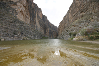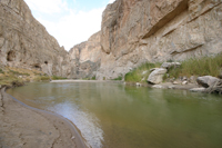 Die Straße führt auf der Ebene und entlang eines Washes hinunter zum Rio Grande. Unterwegs kommt man an Dougut Wells vorbei, einem Picknickplatz mit Lehrpfad, an dem man gut Tiere beobachten kann. Bereits von weitem erscheinen die Gipfel des Elephant Tusk und Chilicotal Mountain, auf der mexikanischen Seite ist bereits der Sierra del Carmen sichtbar. Kurz vor erreichen des Rio Grande zweigt eine Schotterppiste nach Hot Springs ab. Der Track ist relativ schmal und holprig und für Camper nur bedingt geeignet. Auch mit einem normalen Pkw am besten vorher beim Ranger über den Straßenzustand erkundingen. In Hot Springs haben bereits die Indianer die heißen Mineralquellen genossen, was auch heute noch, nach eine Wanderung oder auch langer Autofahrt, den Körper entspannen und die Seele baumeln läßt. Die Mineralquellen erreicht man nur zu Fuß auf einem rund 1 mi / 1,6 km langen Rundweg. Der nächste Stopp zum Rio Grande Village ist der Rio Grande Overlook, von wo aus sich der Rio Grande und die Sierra del Carmen in Mexiko in Szene setzen. Kurz vor dem Rio Grande Village zweit noch eine Straße zum Boquillas Canyon Overlook ab. Von hier aus konnte früher der Rio Grande mit Hilfe einer Fähre nach Boquillas in Mexiko überquert werden, doch heute ist dann eine Wiedereinreise in die USA an dieser Stelle nicht mehr möglich. Der Boquillas Canyon Trail führt in 1,4 mi / 2,2 km hin und zurück in den Boquillas Canyon hinein. Im Rio Grande Village befinden sich ein Visitor Center, Shops, Picknickplätze und der Rio Grande Village Nature Trail, der in 0,7 mi / 1,1 km hin und zurück durch dichte Auenvegetation zu einem Aussichtpunkt über den Rio Grande führt.