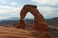 Arche sind Naturdenkmäler, teilweise sogar frei stehende Steinbögen die, wenn man sie nicht in natura gesehen hat, nur schwer vorstellbar sind. Der Arches NP beinhaltet über 2.000 solcher Steinbögen, eingebettet in eine faszinierende Landschaft, die fast unwirklich scheint. Fantastische Gesteinsformen wechseln sich mit der Weite des Landes ab, dazwischen Felstürme und Steinbögen, gedeckelt von einem tiefblauen Himmel und im Hintergrund schneebedeckte Berge.