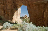 Am Balanced Rock, einem Felsturm, auf dessen Spitze ein Fels balanciert wird, führt eine Seitenstraße in die Windows Section. Schöner Trail (1,6 km Rundweg) am Turret Arch um North und South Window herum. Von hier auch schöne Sicht auf den Double Arch.