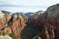 Der Zion NP wurde am 19. November 1919 gegründet und umfaßt 593 km². Der größte Teil der Besucher begrenzen ihren Aufenthalt auf den Südteil mit dem endrucksvollen Zion Canyon. Der mittlere Teil sowie die im Norden gelegenen Kolob Canyons (beide nicht mit dem Straßensystem im Park vom Zion Canyon aus erreichbar) bleibt von den Besuchermassen weitgehend verschont.
